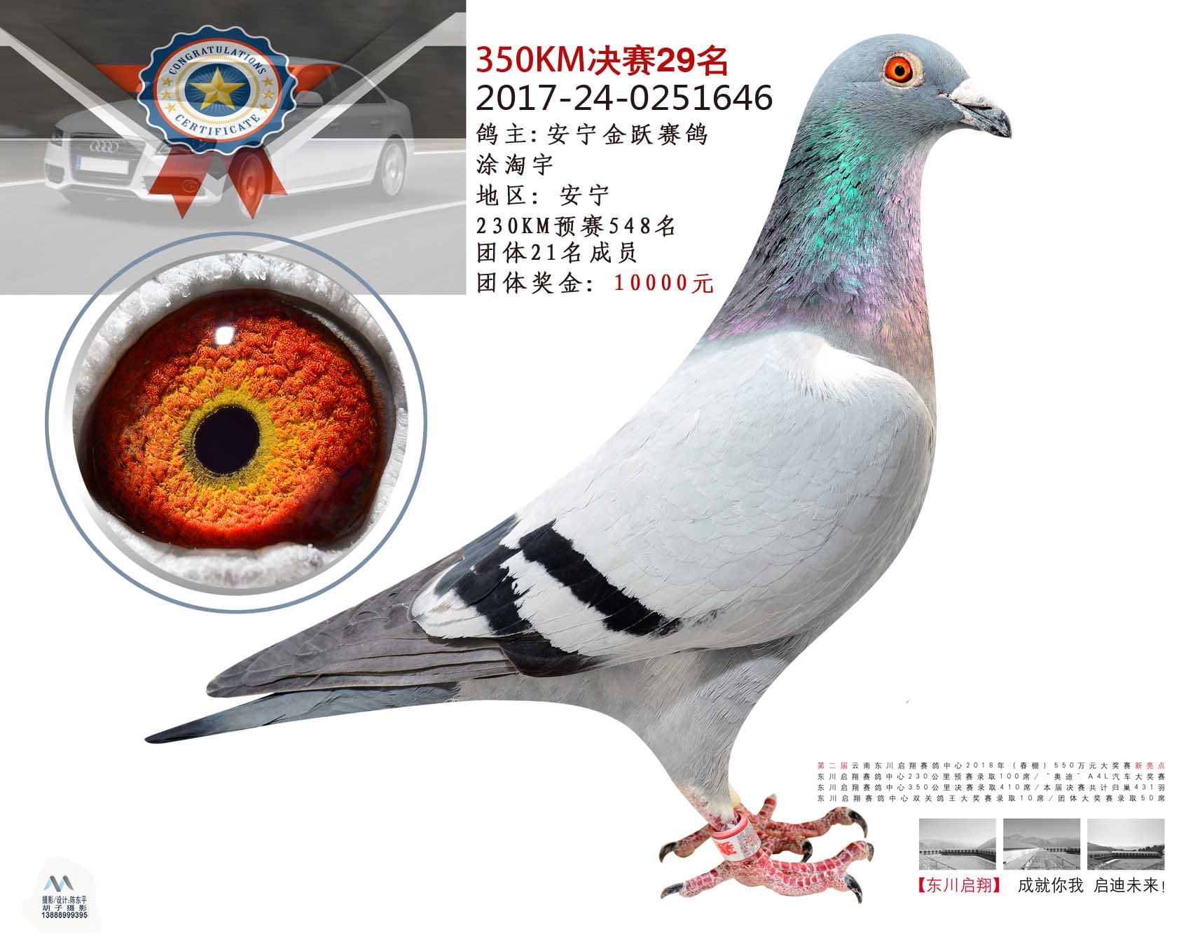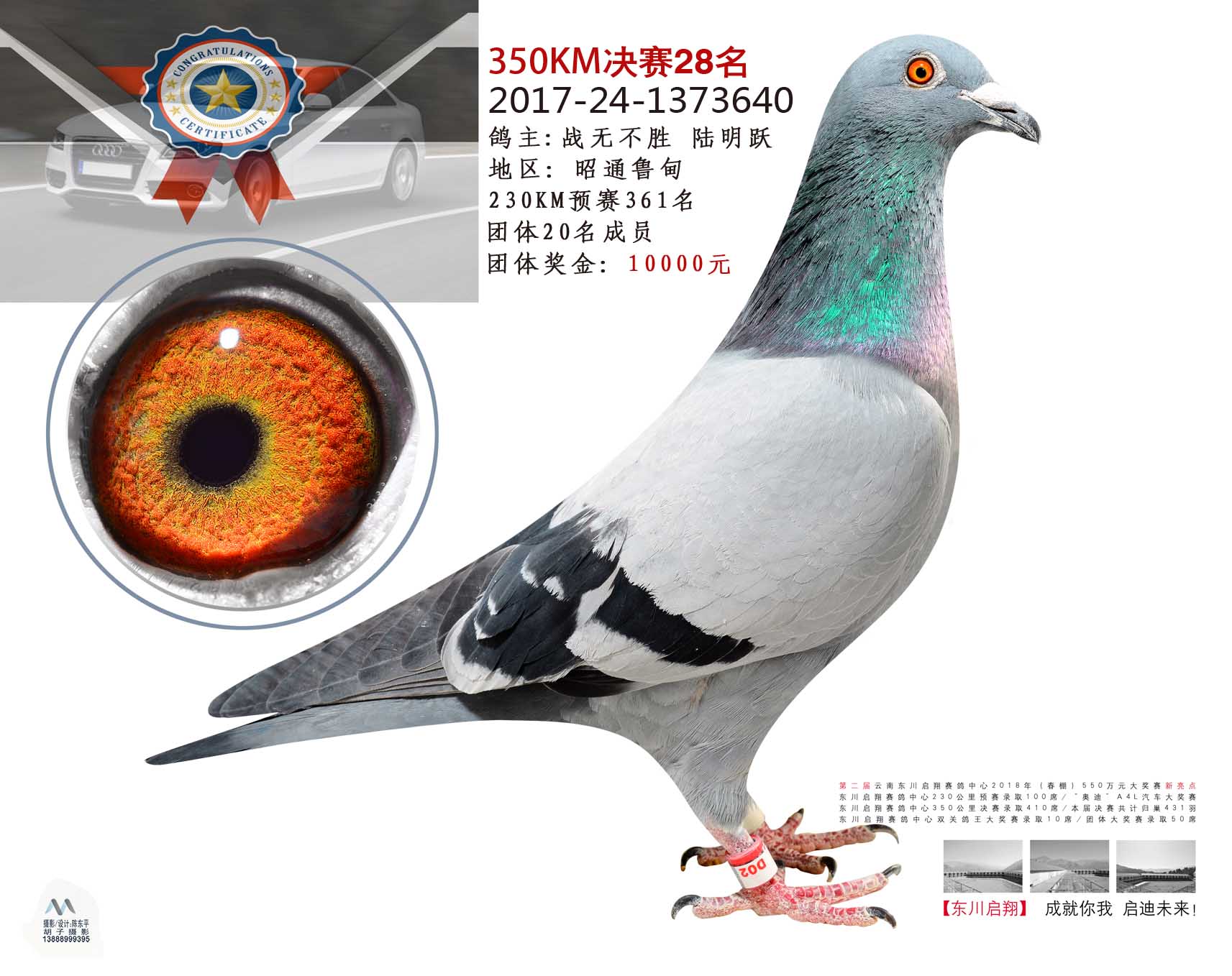 2018年东川启翔赛鸽中心决赛前十名、鸽王前十名照片