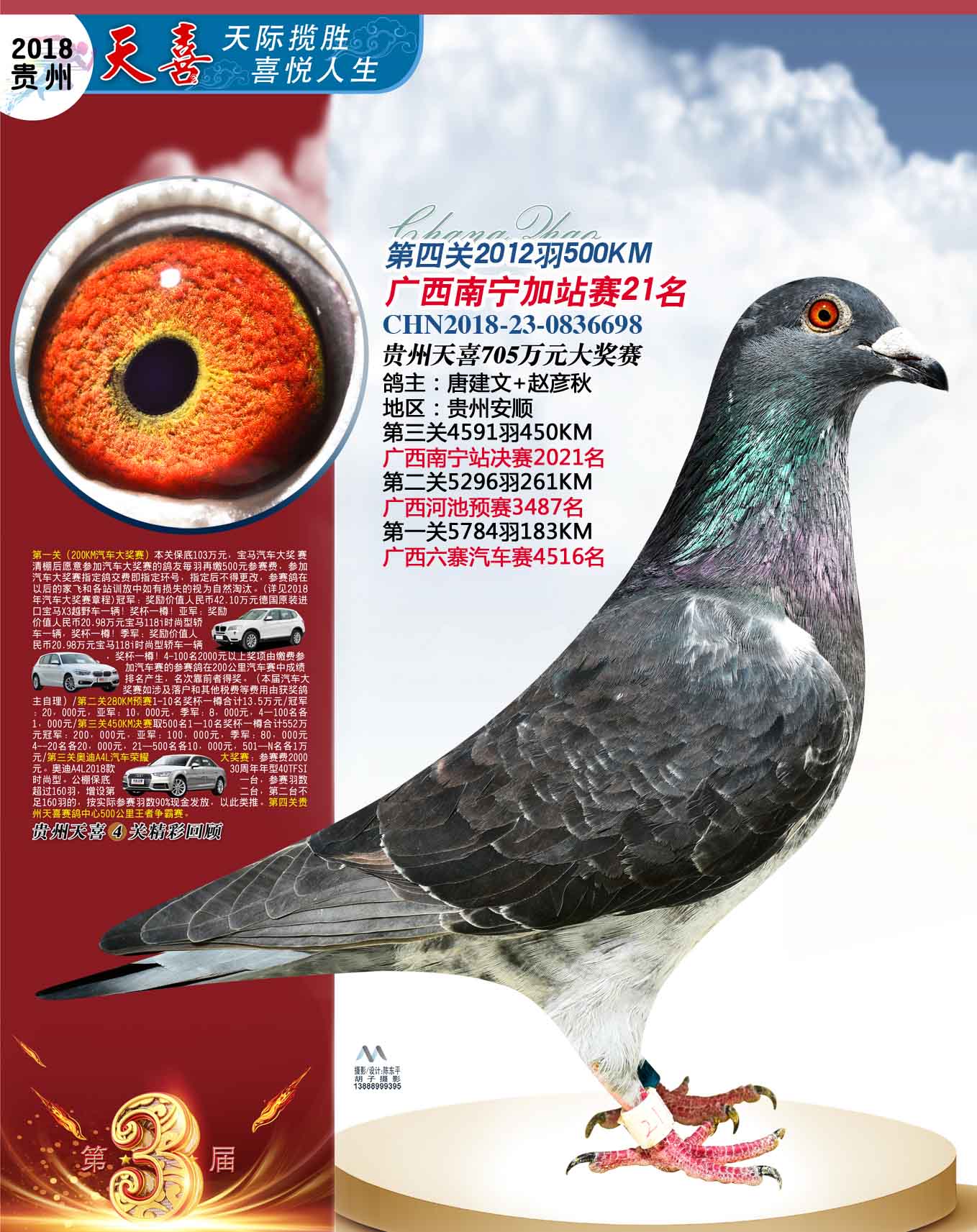 贵州天喜赛鸽中心加站赛前十名、四关鸽王照片欣赏